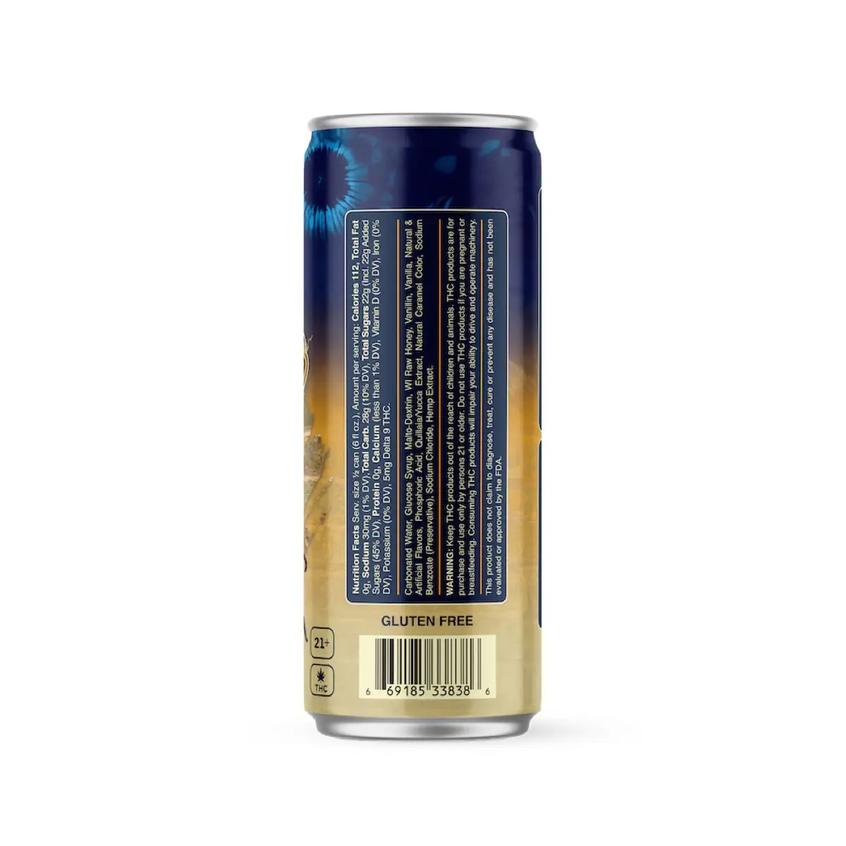 Carbonated Water, Glucose Syrup, Malto-Dextrin, WI Raw Honey, Vanillin, Vanilla, Natural & Artificial Flavors, Phosphoric Acid, Quillaia/Yucca Extract, Natural Caramel Color, Sodium Benzoate (Preservative), Sodium Chloride, Hemp Extract.