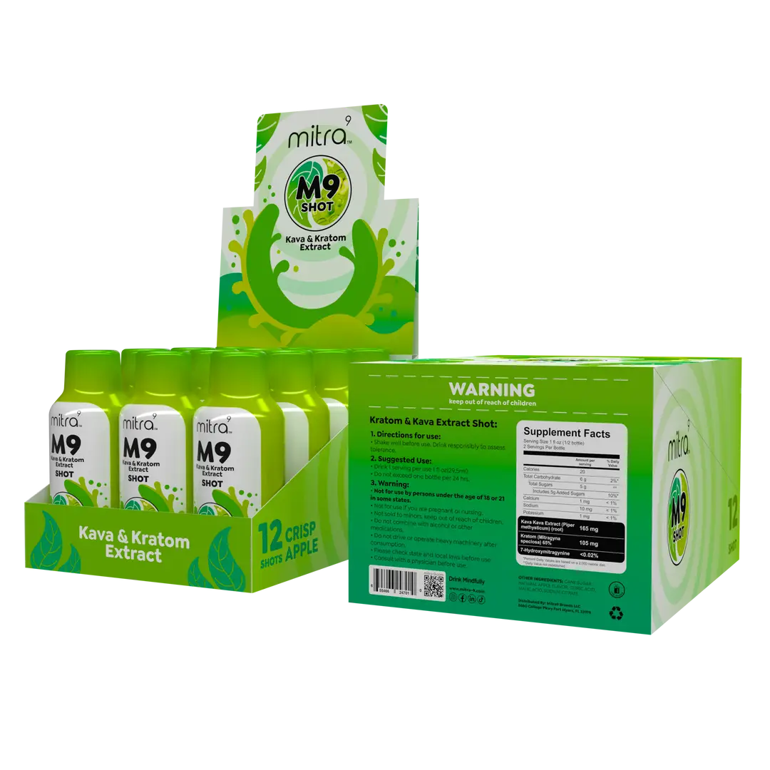 Delight in the seamless combination in every sip of M9 Kava & Kratom Shot. This innovative product encapsulates the goodness of both these elements, delivering a comprehensive relaxation experience in a compact and flavorful package.